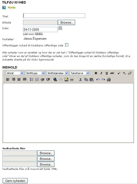 Vedhæftede filer og billeder vil herefter blive lagt ind i nyheden, og medlemmerne kan hente og se disse.