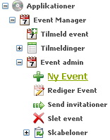 I menuen til venstre skal du klikke på menupunktet "Ny Event" under "Event admin" under "Applikationer":