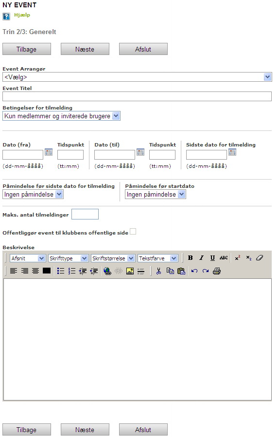 Trin 2 – Udfyld oplysninger om eventen