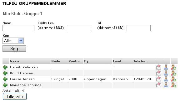 Du kan tilføje én ad gangen ved at trykke på det grønne plus på ovenstående billede, eller tilføje alle de fundne spillere ved tryk på knappen ”Tilføj alle”.