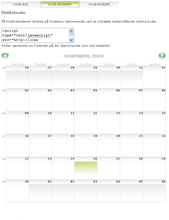 For at få vist Foreningsweb.dk kalenderen for din forening på hjemmesiden, indsættes koden på hjemmesiden.