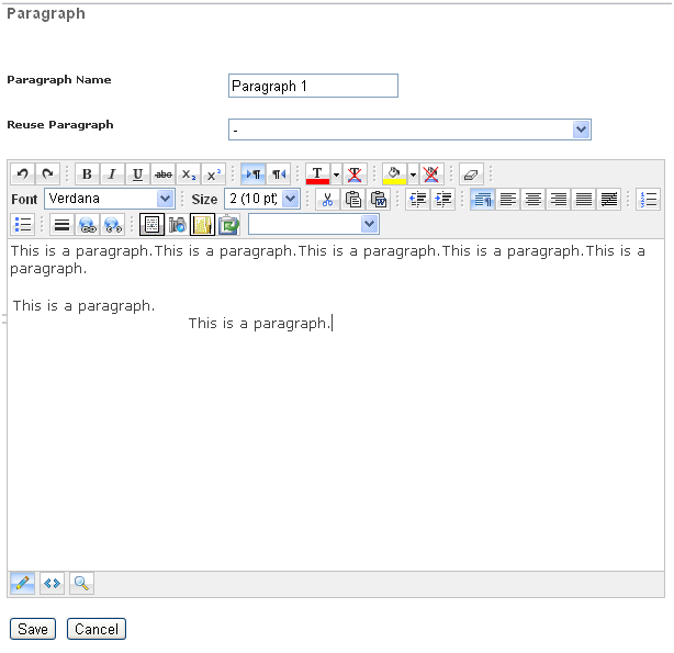 After you save your paragraph, your paragraph appears on the Page Contents pane