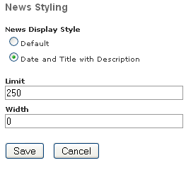 If you select 'Default' as your News Display Style, the page appears as below: