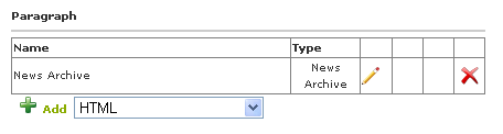To add the News Archive to your paragraph, Select 'News Archive' option in the paragraph drop down list and click on the "Add" link. It will open up a new page like this.