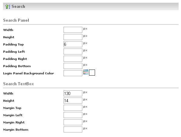 Here you can design the Search Panel, set the width of the Textbox and design the