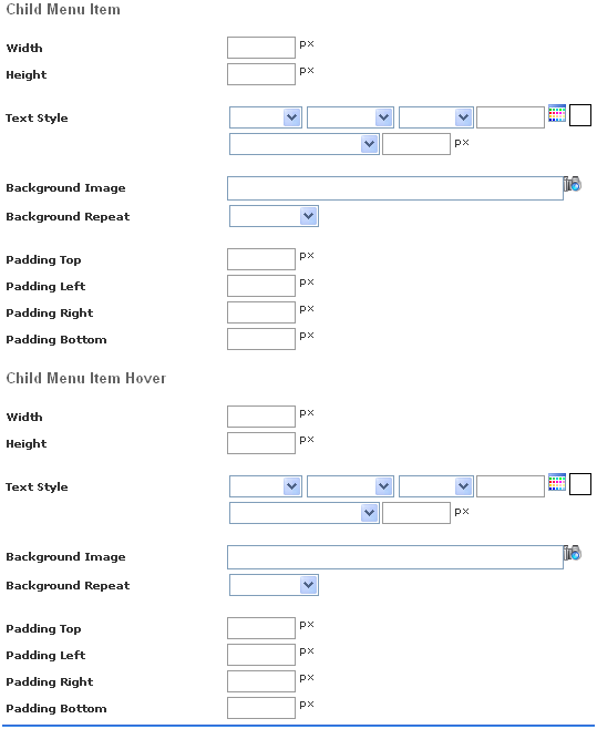 Child Menu Item - Used to design the Child Menu Item.