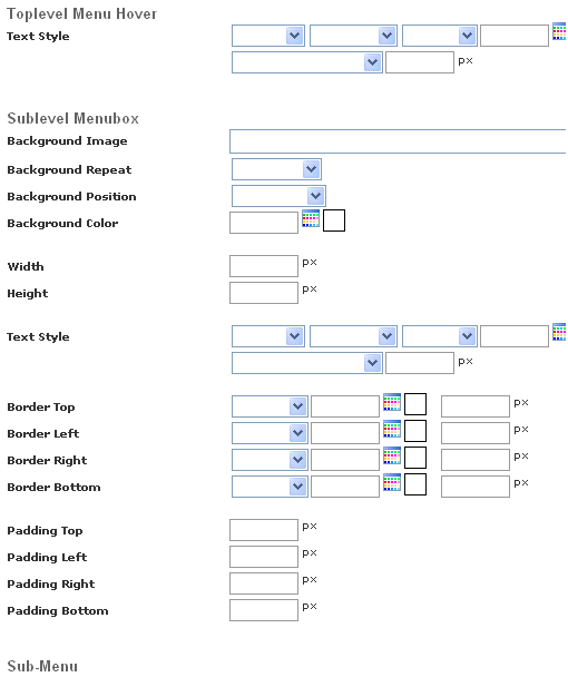 for the sub menus using
