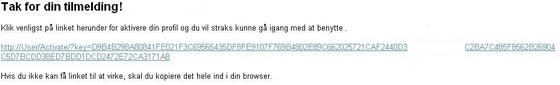 En e-mail vil blive sendt til den indtastede e-mailadresse, og denne indeholder et aktiveringslink. For at færdiggøre oprettelsen af din bruger, skal du klikke på dette link.