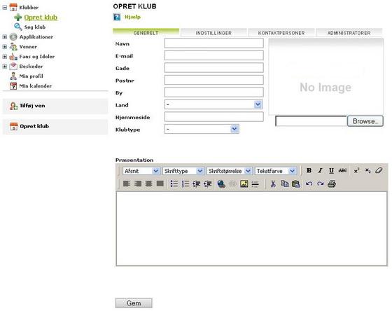 Når du opretter en forening skal du indtaste informationer og evt. en kort præsentation af din forening.