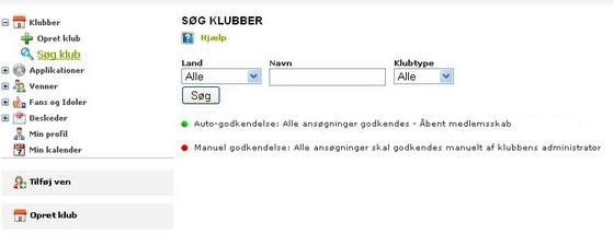 I menuen til venstre har du nu mulighed for enten at oprette en ny forening, eller søge efter en forening at blive medlem af.
