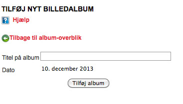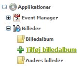 Start med at oprette dit album. Dette gør du ved i venstremenuen at klikke på ”Tilføj billedalbum” under ”Applikationer” og ”Billeder”: