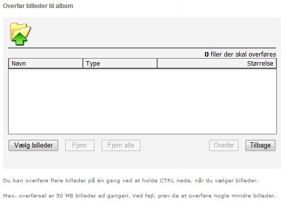 Du kan nu overføre billeder til mappen. Klik på ”Vælg billeder” her: