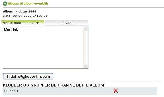 Du får nu mulighed for at vælge din forening og klikke ”Tildel rettigheder til album”: